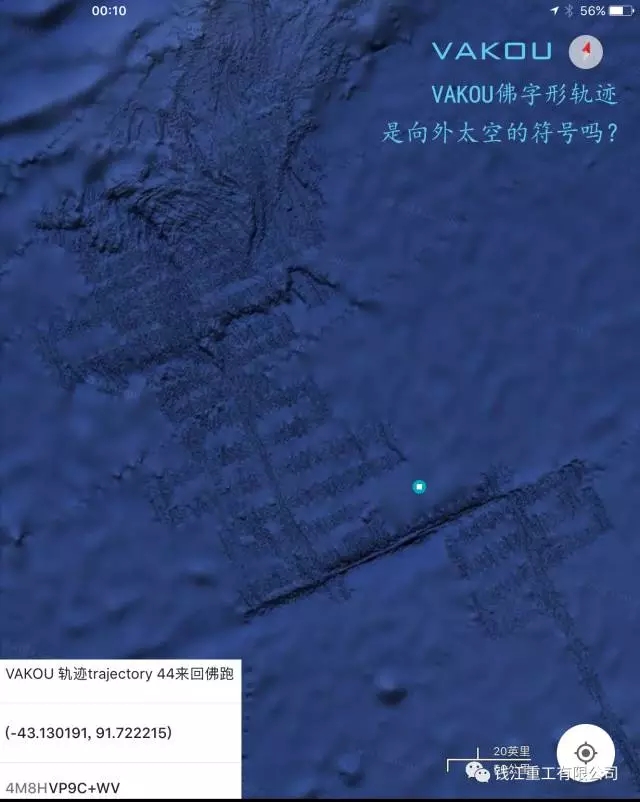 VAKOU佛字形 軌跡,**令我們驚奇的圖像,這是一種智能文明的行為結果,是向外太空的符號嗎?佛形軌跡,之后又發(fā)現(xiàn)很多的類似軌跡;這可能就是馬航MH370失蹤的區(qū)域。
