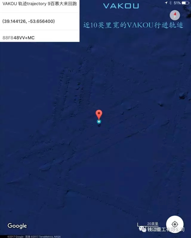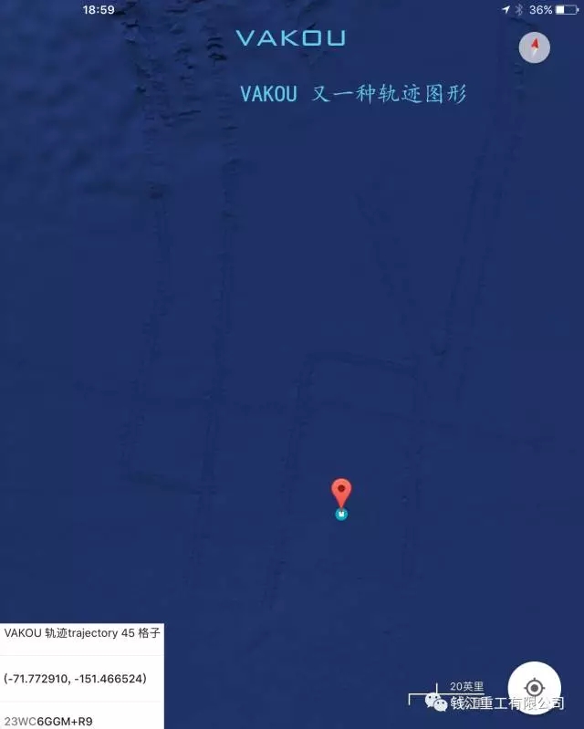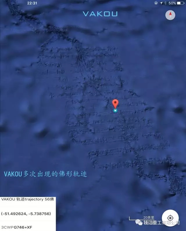 馬上想起了百慕大之謎,果然看到的圖像更加恐怖,也更加確信這是一種智能文明的結果,而不是自然的結果!請注意右下角的地圖比例,以說明VAKOU的寬度。