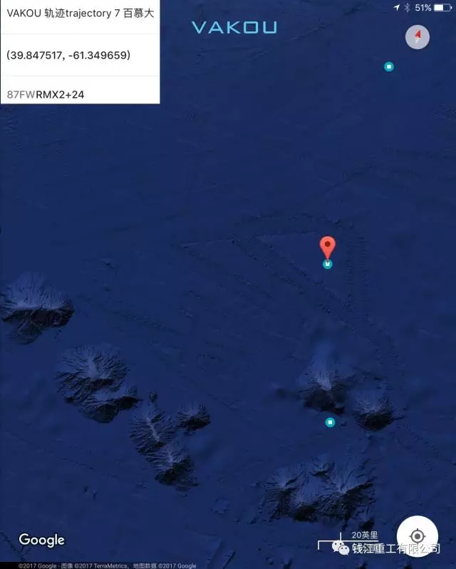 說明一下:Google Maps 陸地上圖像是光學采集成形,海底圖像是通過聲吶采集成形,聲吶采集圖像能透過部分淤泥沙土,海水的沖擊對地質影響很緩慢,深海更加緩慢,可以忽略不計,地殼里面的變化對海底形狀影響要快速直接,如火山地震等等!